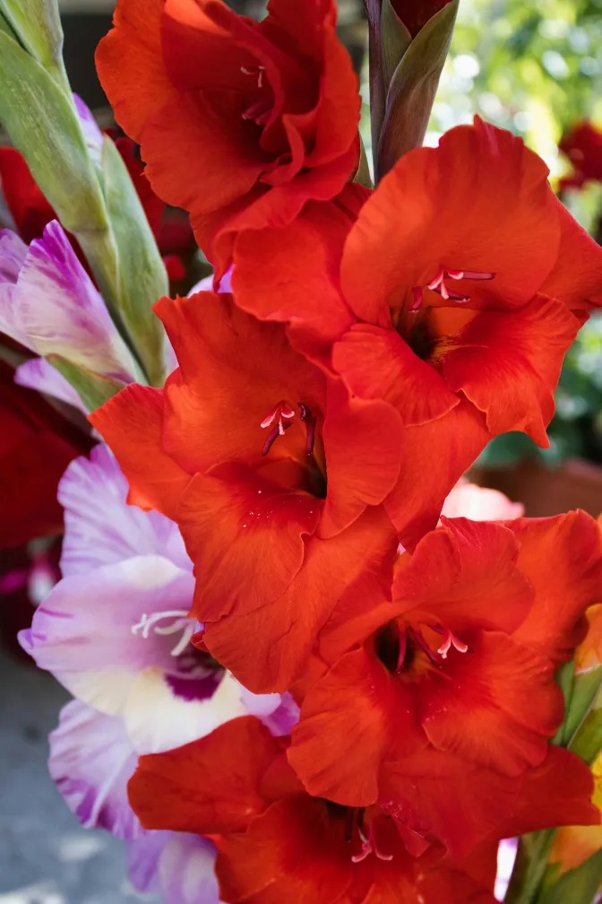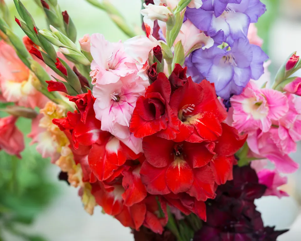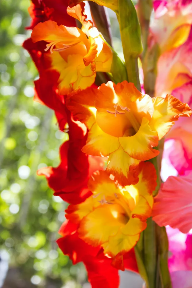 Impressive flower spike of classic appearance. Gladioli are available in virtually all colors, with stems from 80 to 130 cm for large arrangements.