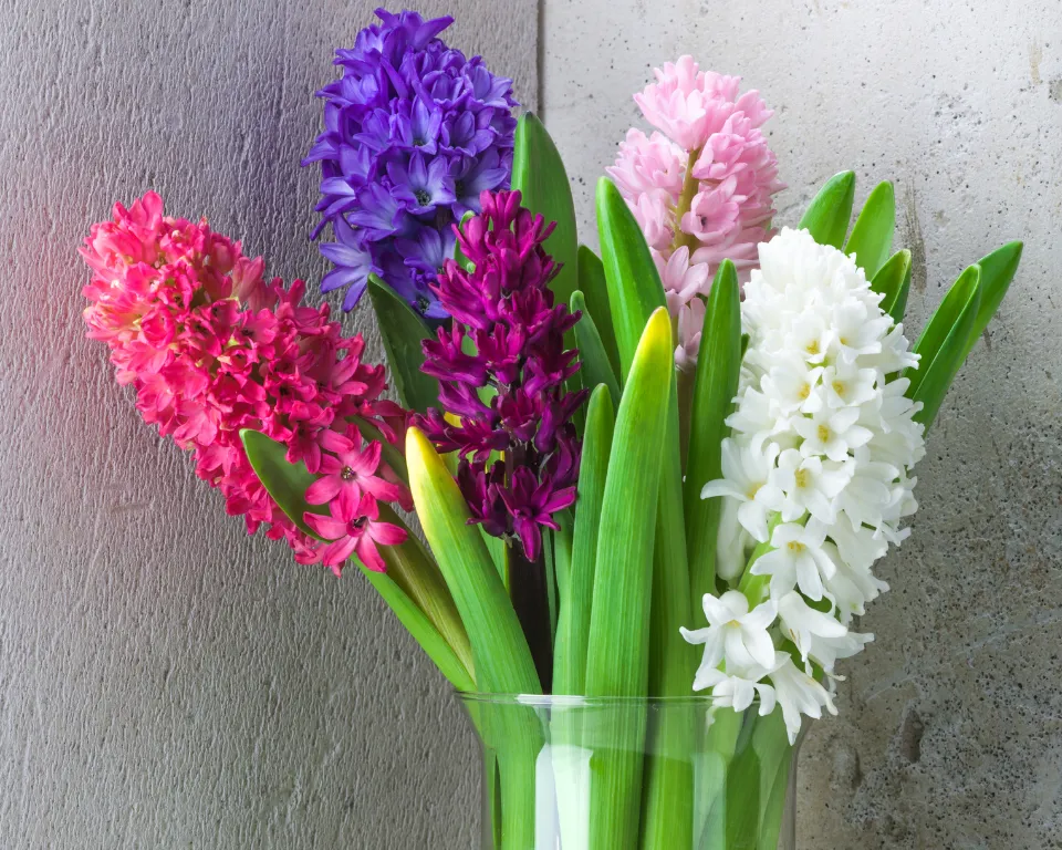 Los jacintos son una de las flores cortadas más aromáticas que existen. Con densas espigas de flores azules, moradas, rosas, rojas, amarillas y blancas, los jacintos son una elección popular para ramos de primavera y arreglos aromáticos. Florca suministra jacintos a mayoristas e importadores procedentes de cultivadores de bulbos especializados de los Países Bajos.