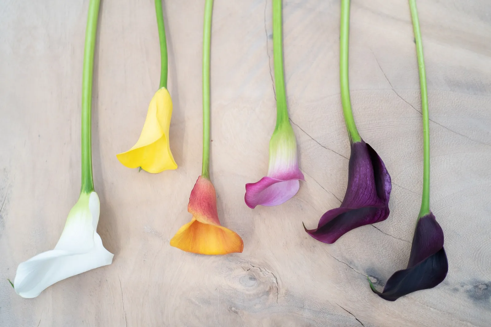 Les callas, connues sous le nom botanique de Zantedeschia, sont une icône de la fleuristerie moderne. Leur fleur élancée, en forme d'entonnoir, de couleur blanche, jaune, orange, violette ou noire, les rend idéales pour les arrangements minimalistes, les arrangements de mariage et les bouquets exclusifs. Florca fournit des callas provenant des meilleurs producteurs néerlandais et propose un assortiment complet pour les grossistes et les importateurs.