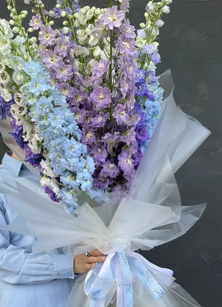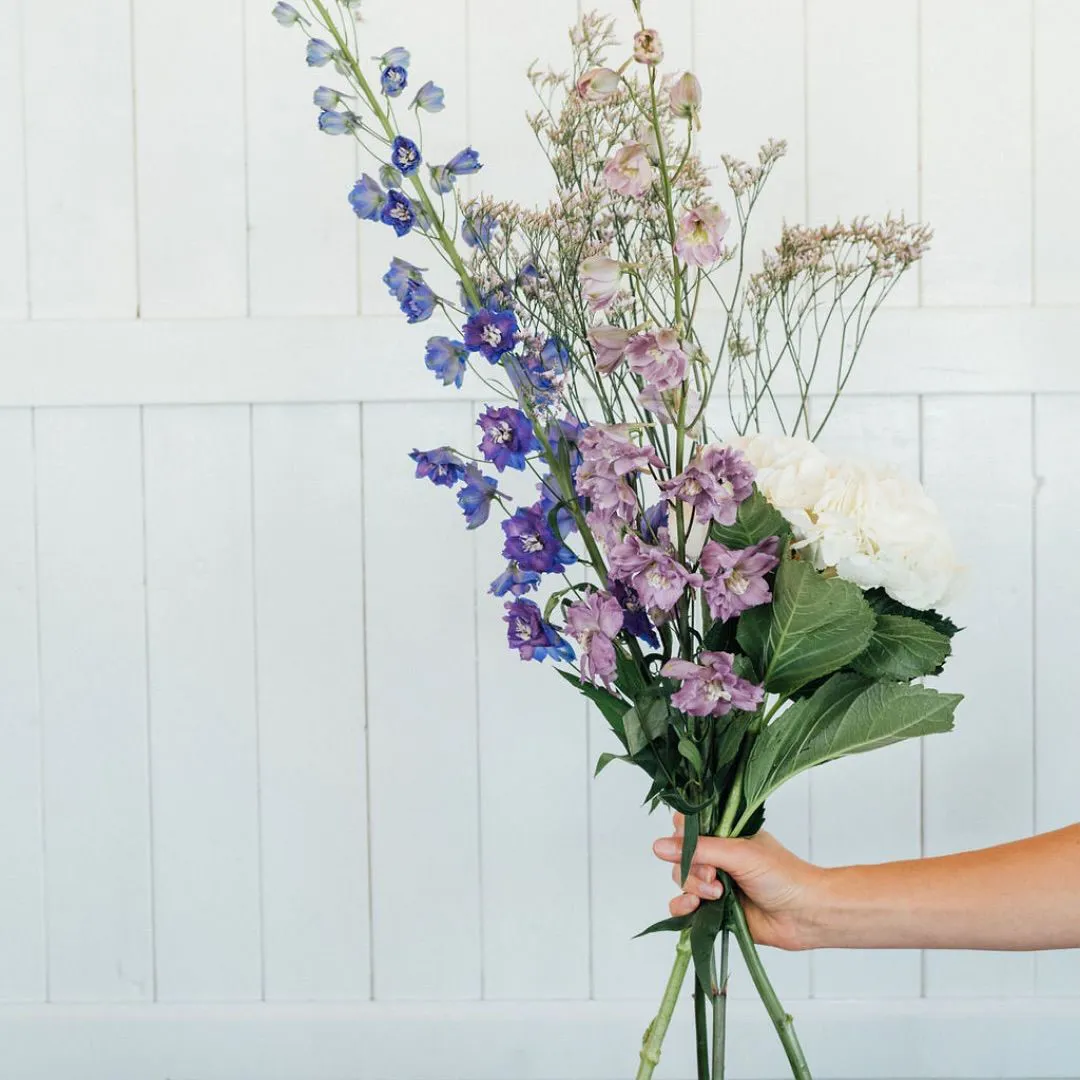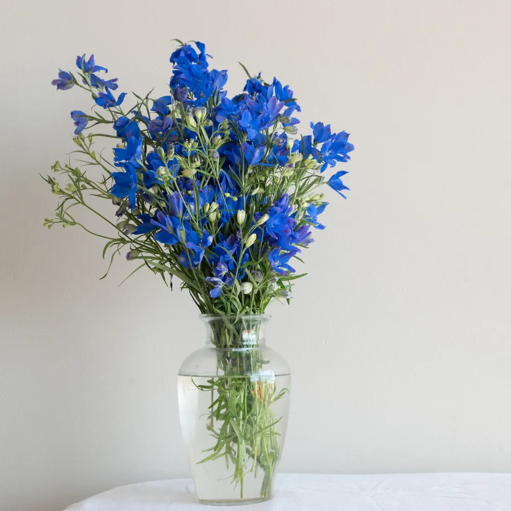 Un bleu unique qu'aucune autre fleur coupée n'offre. Longues pointes de fleurs d'un bleu vif à un violet profond, idéales pour accentuer la couleur dans les compositions haut de gamme.