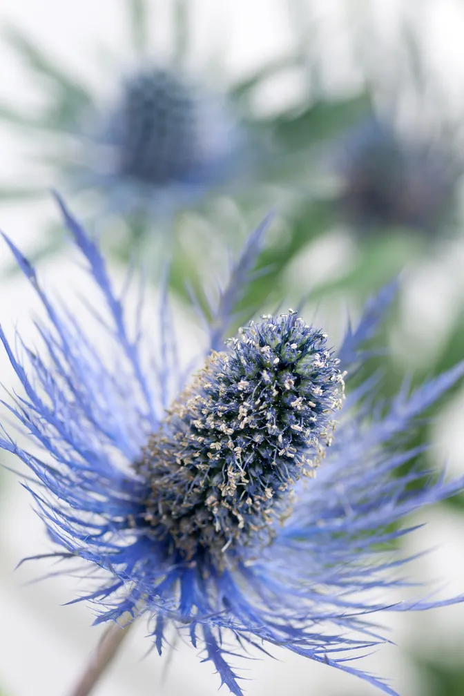 L'éryngium, également appelé algue ou houx de mer, est une fleur coupée architecturale d'un bleu acier saisissant, dont le capitule est hérissé de pointes et ressemble à un cône. C'est un accessoire populaire dans les styles floraux modernes, botaniques et champêtres. Florca fournit l'eryngium directement à partir des producteurs européens pour les grossistes et les importateurs qui recherchent une texture et une couleur inhabituelles.