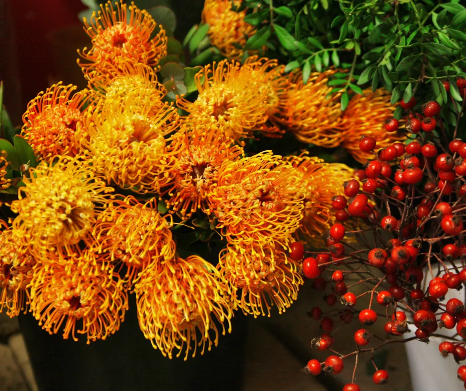 ✔ Exotique et durable. Les têtes florales remarquables de Leucospermum ont une durée de vie en vase exceptionnellement longue de deux à trois semaines.
