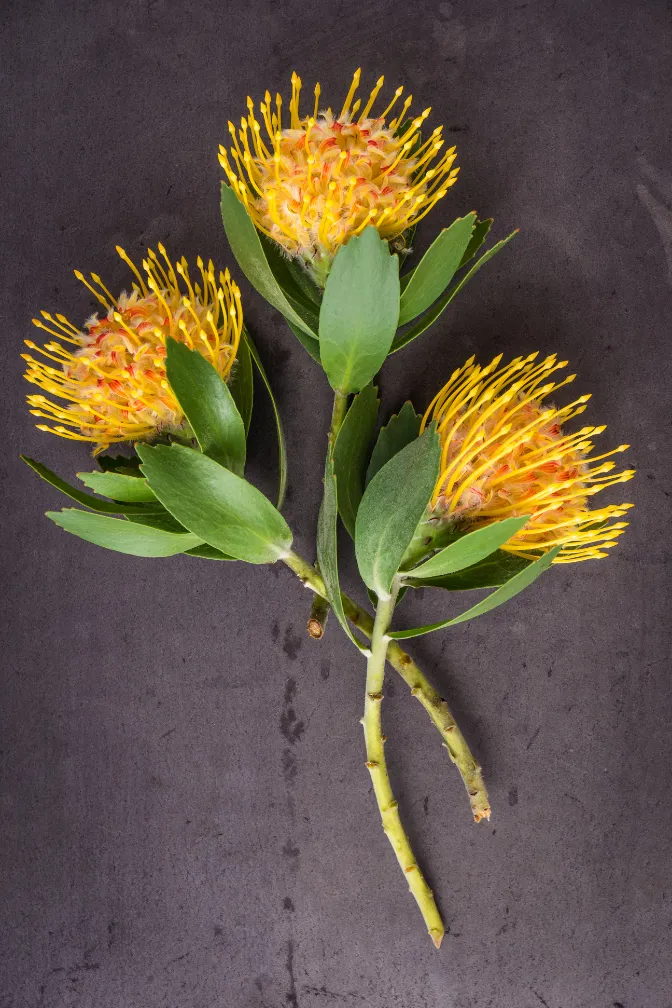 Leucospermum, plus connu sous le nom de protea en coussinet, est l'une des fleurs coupées exotiques les plus frappantes de l'assortiment. Les grands capitules ronds aux étamines saillantes dans les tons jaune, orange, rose et rouge ajoutent une touche tropicale et dramatique à toute composition. Chez Florca, vous achetez des Leucospermum frais, provenant directement de producteurs spécialisés d'Afrique du Sud, d'Israël et des Pays-Bas. Disponible pour les grossistes, les fleuristes et les importateurs du monde entier.