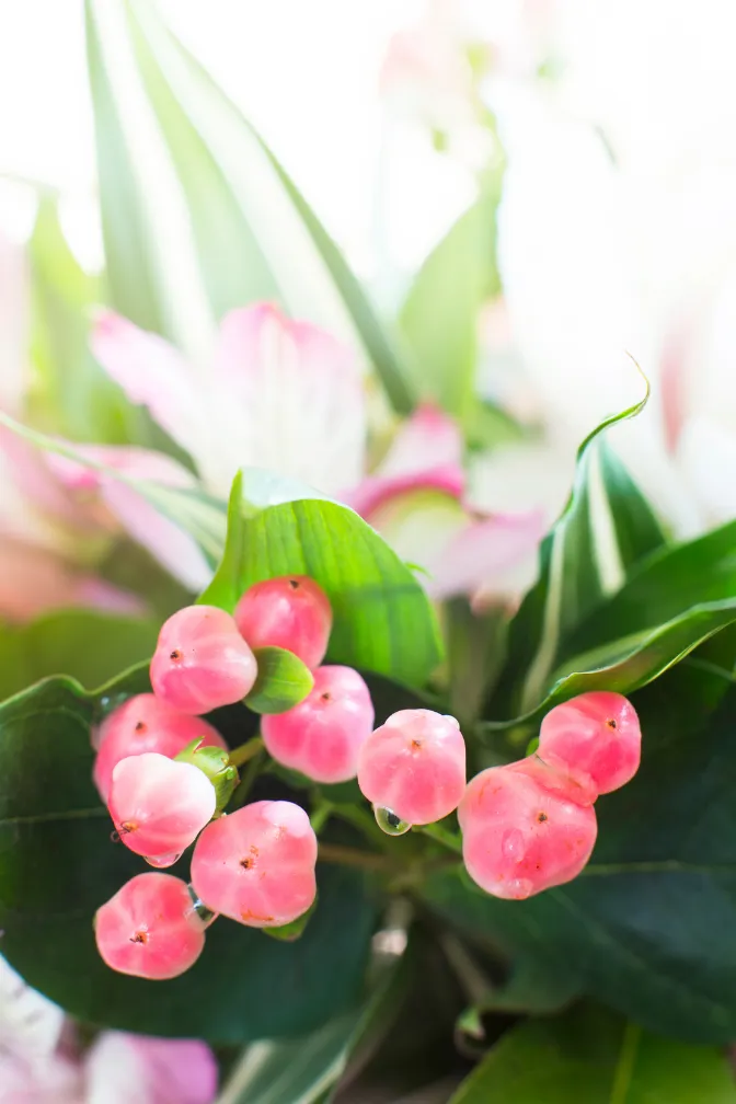 Hypericum is een sierlijke bessen¬drager die veel wordt gebruikt als aanvullend element in gemengde boeketten en arrangements. De glanzende bessen in groen, rood, geel, oranje en bordeaux geven boeketten kleur, volume en textuur. Florca levert hypericum van gespecialiseerde kwekers in Nederland en Europa voor groothandels en importeurs.